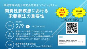今年も、薬局管理栄養士研究会の年次大会を開催いたします。